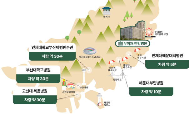 본원치료 편리하고 편안하게 주요 대형 병원· 대형 암센터와 약 20분 내외로 위치해 있습니다.
